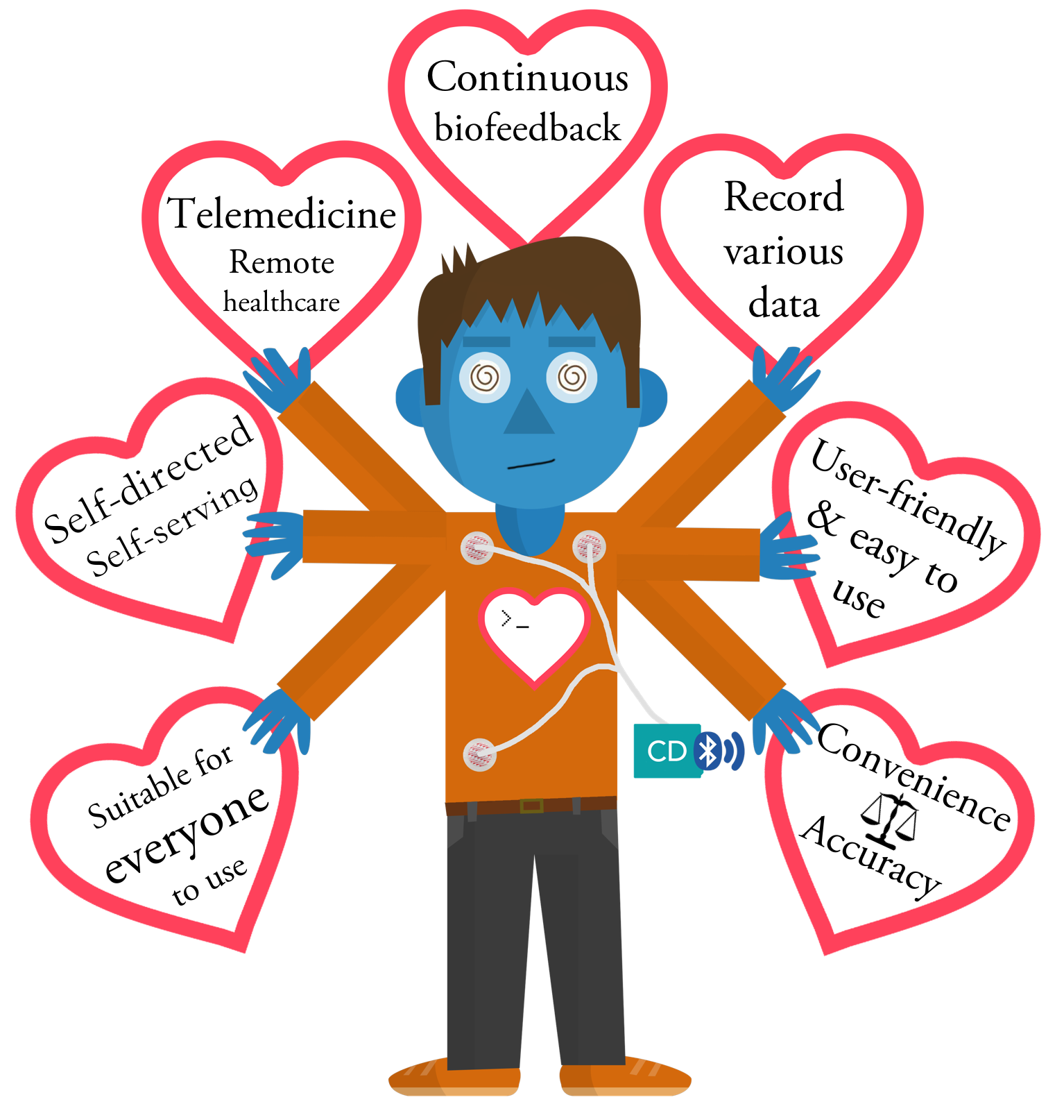 - Three major components: CD Device, CD App, and CD Platform to allow better recording and analysis for both the users and family doctors, as well as to be able to analyze big data collected through the device on the server.